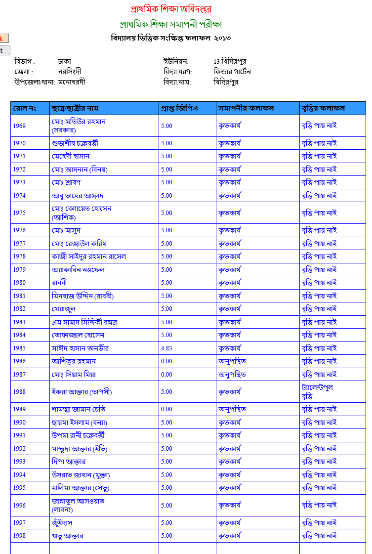 প্রাথমিক শিক্ষা সমাপনী পরীক্ষা ২০১৩
