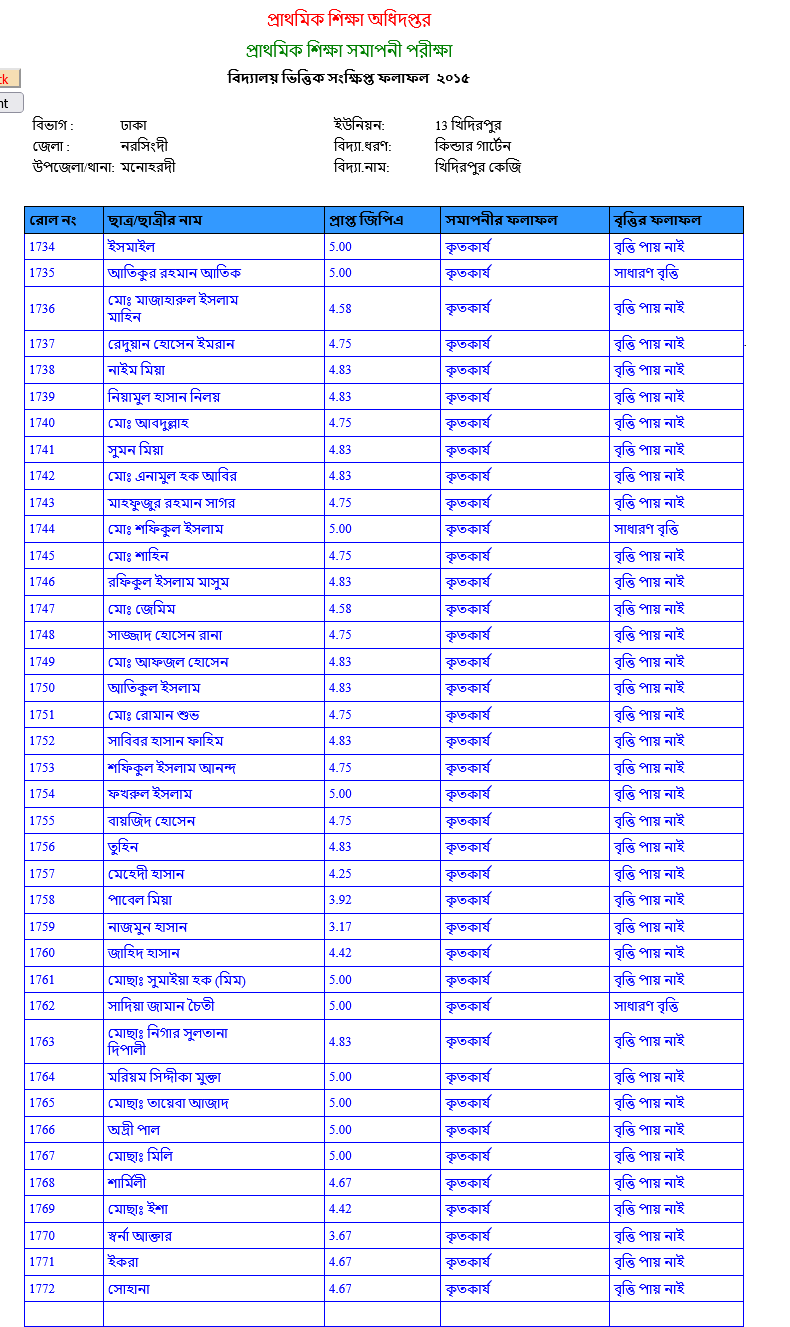 প্রাথমিক শিক্ষা সমাপনী পরীক্ষা ২০১৫