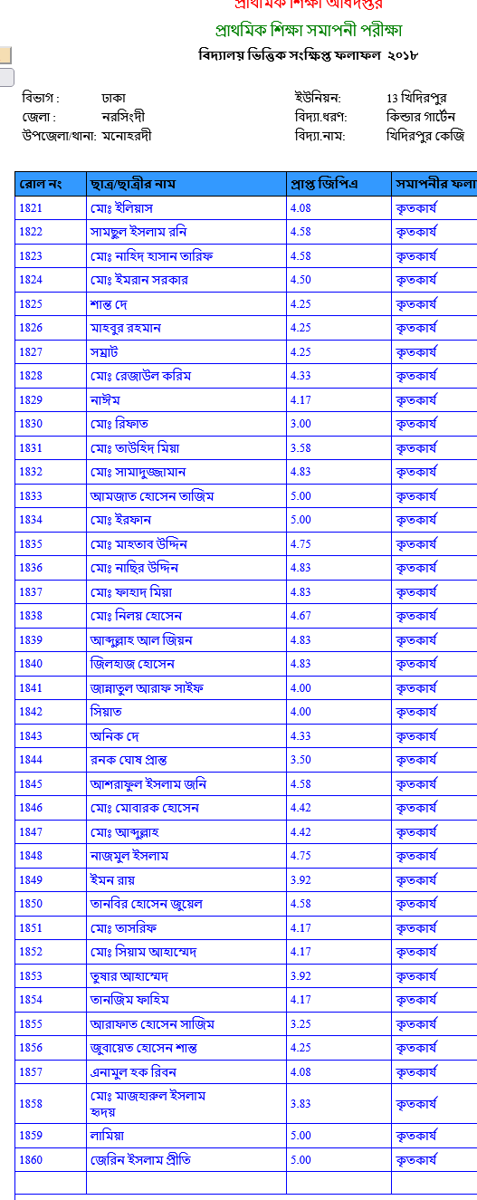 মোট পরীক্ষার্থী = ৫০ জন এ+ = ১৭ জন এ = ৩৩ জন ১০০% পাস